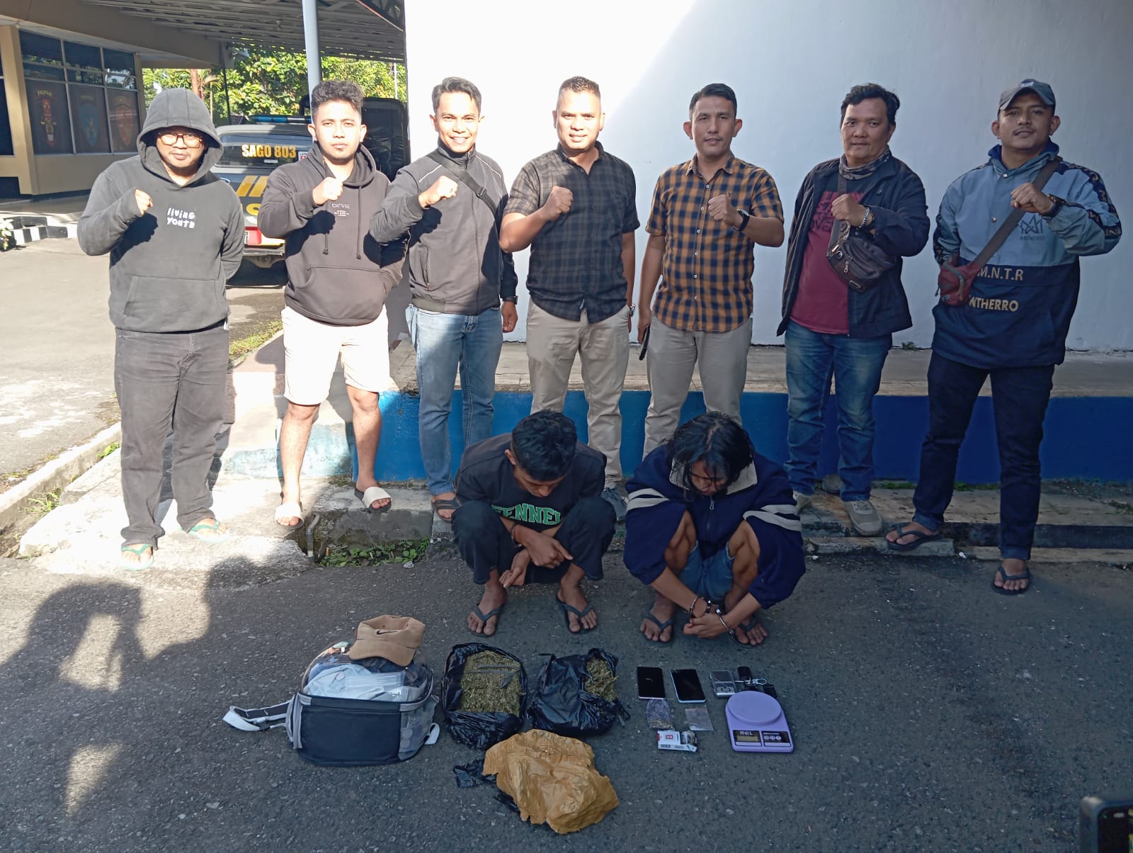 Saat di sergap dan di lakukan penggeledahan terhadap keduanya setidaknya polisi berhasil menemukan barang bukti berupa satu paket narkotika jenis ganja di dalam jok sepeda motor kemudian satu paket narkoba jenis sabu-sabu yang di bungkus dengan plastik bening di simpan dalam kotak rokok Sampoerna.
