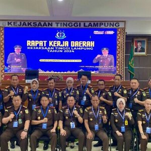PRESINDO.com | Bandar Lampung, Kejaksaan Tinggi (Kejati) Lampung menggelar rapat kerja daerah (Rakerda) tahun 2024 bertajuk, “meletakan pondasi transformasi penegakan hukum modern menuju Indonesia emas 2045”, yang dipusatkan di aula kantor Kejaksaan Tinggi Lampung, pada Jumat (13/12/2024) pagi.